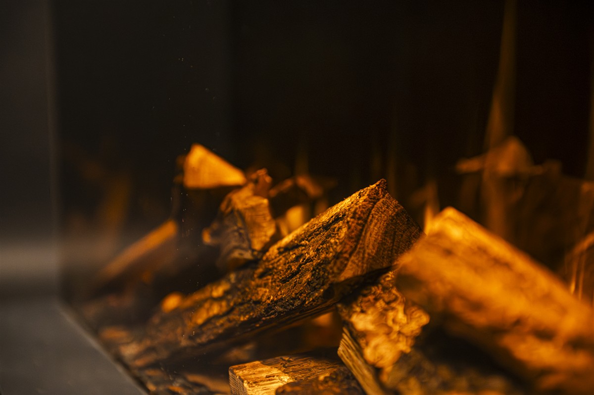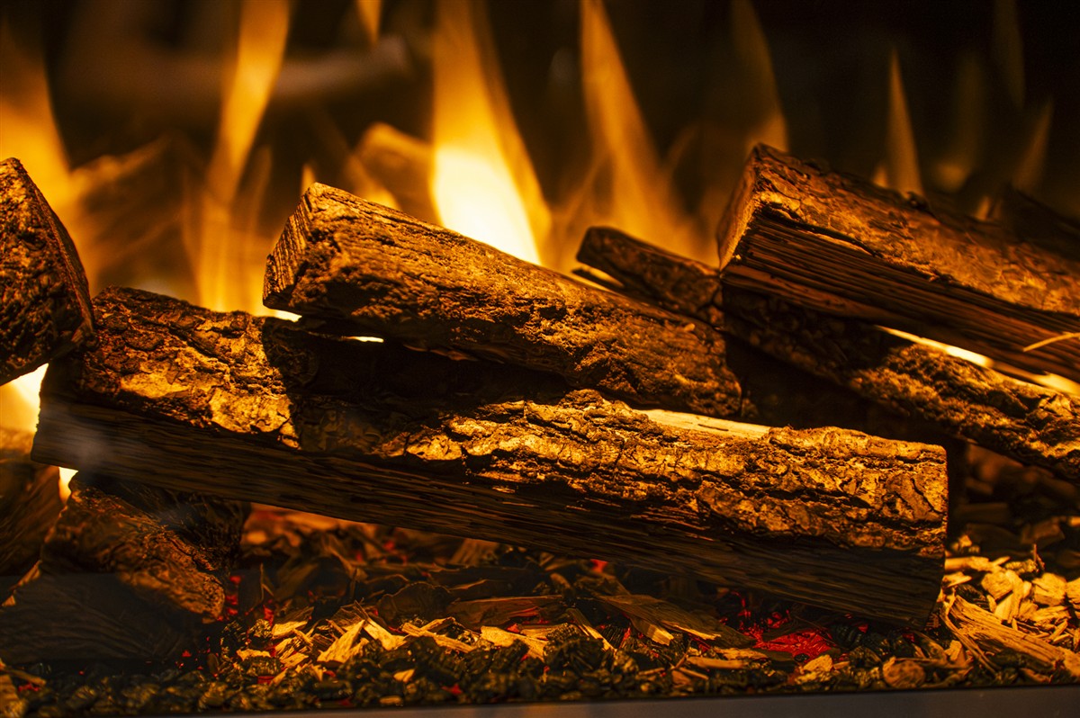 De Ultimate wordt daarnaast standaard geleverd met handgemaakte échte houtstammen set. Geen kunststof imitatie, maar handgemaakte verbrande houtblokken op een helder en gloeiend vuurbed. De bodem is stijlvol afgewerkt met echte houtsnippers, houtskool en boomschors voor een authentiek smeuleffect. Dankzij de slimme verlichting lijkt het alsof het vuur echt tussen de houtstammen brandt.