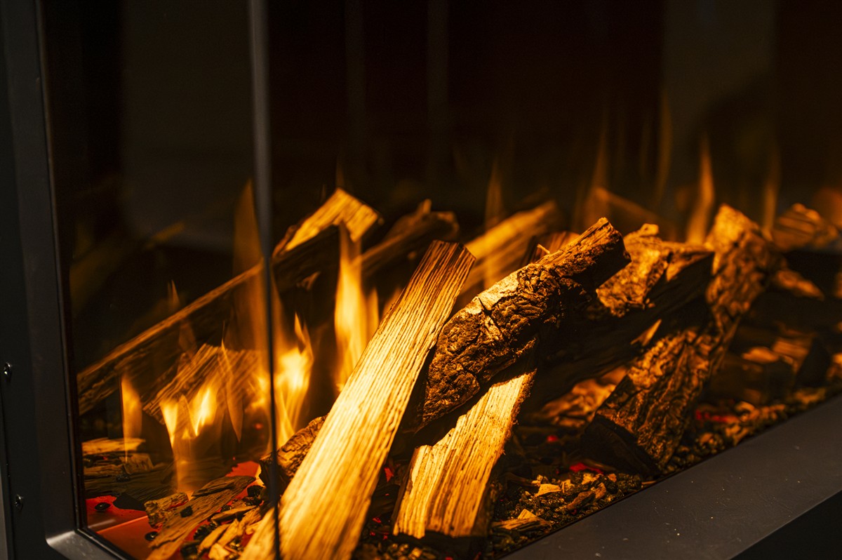 De Ultimate serie wordt standaard geleverd met donkerder glas aan de achterzijde waar de vlammen op afgespeeld worden. Doordat er een klein gespiegeld effect nog in het glas zit, wordt er alsnog een diepte effect gecreëerd waarbij het net lijkt of de houtblokken gedupliceerd worden en de vlammen tussen de houtblokken in branden. Zo krijgt u het meest realistische vlameffect.
